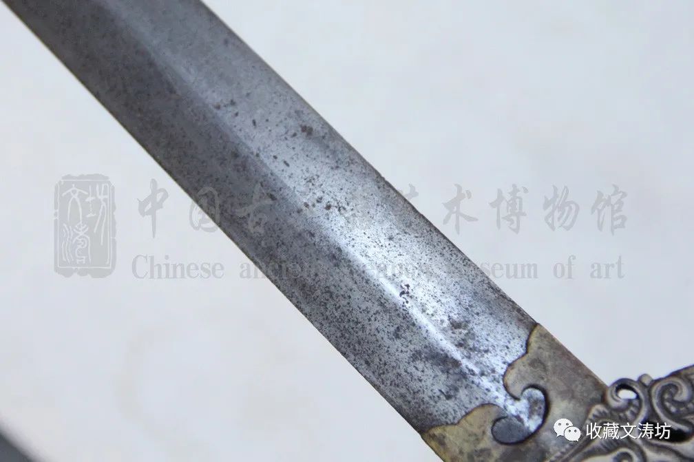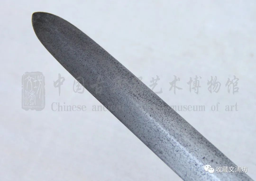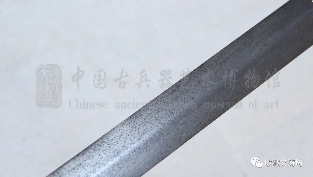 剑身笔直厚实,剑脊分明,棱角凌厉,虽历经百年却风骨犹在,剑气依旧。