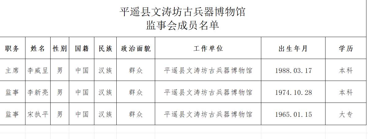 李新亮,男1974年4月10日出生,祖籍山西平遥。1996年12月—2007年4月上海运城制板有限公司2008年6月—2016年9月,精诚达会计服务中心2016年10月—至今文涛坊古兵器博物馆