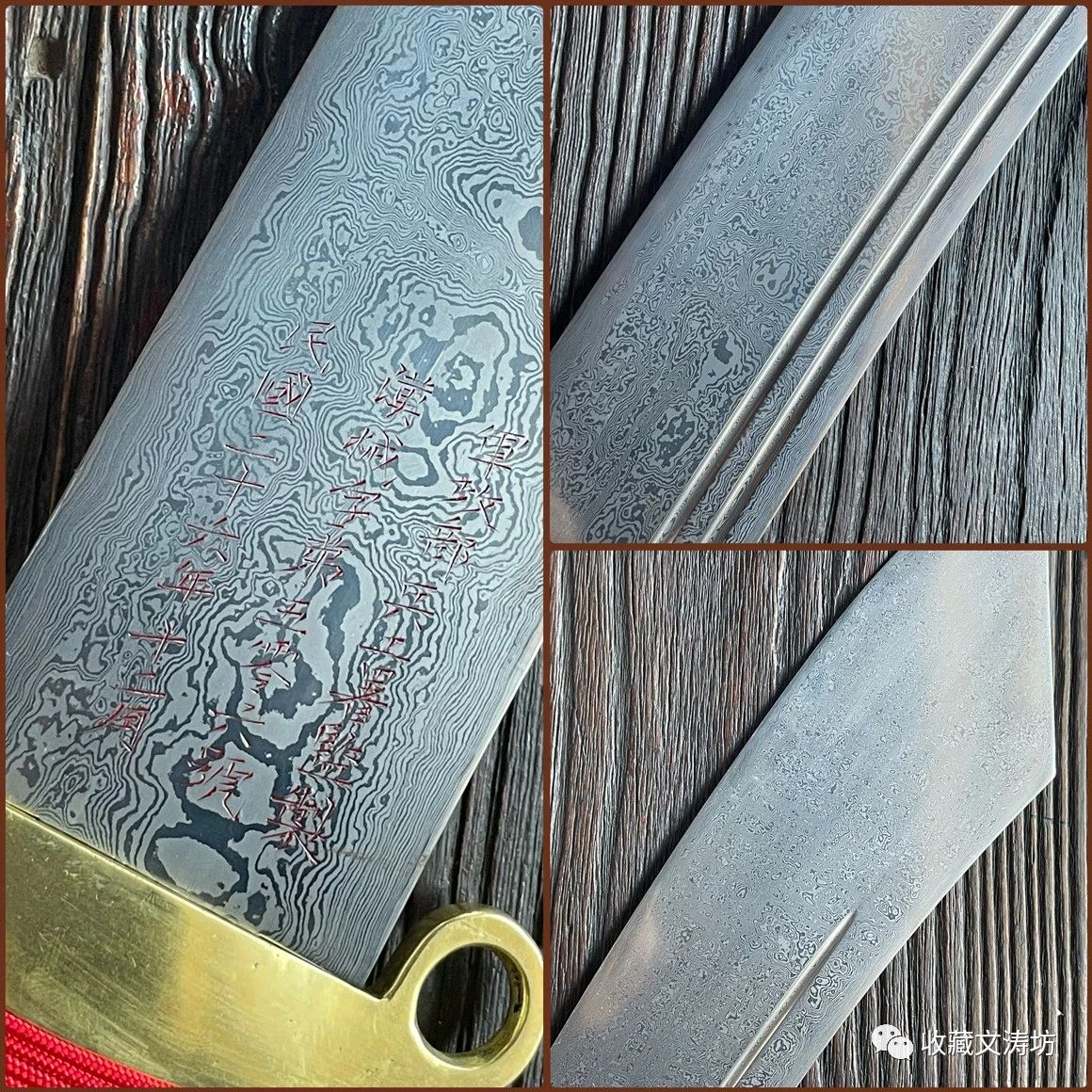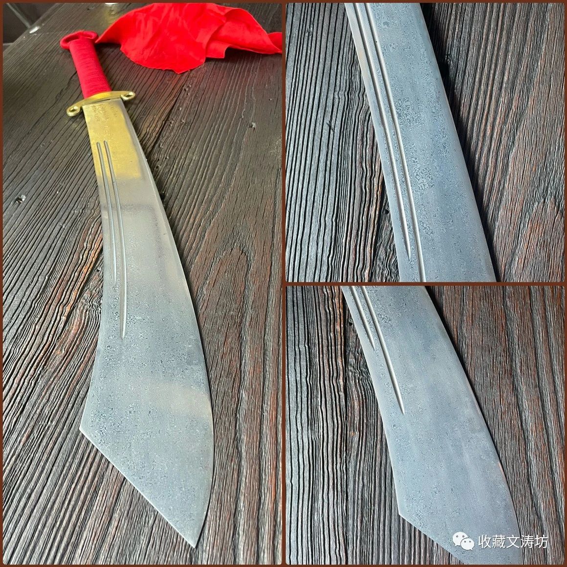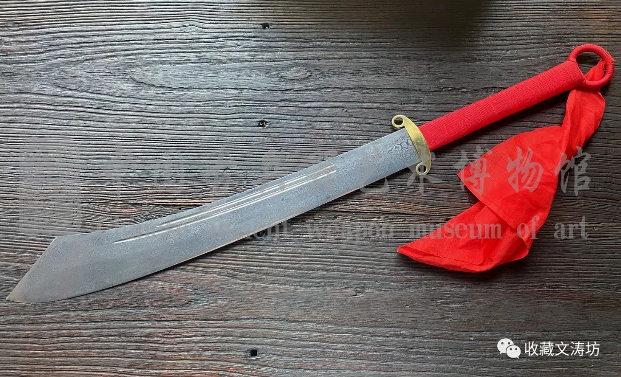 工艺:精选钢材,古法折叠锻造,经过研磨师数十道工序,手工精度研磨而成。刀身开双血槽。刀根部分手工錾刻“军政部兵工署汉械字第五零六号民国二十六年十二月”。刀鞘精选牛皮鞘,手工缝制而成。大道至简,此刀与大多数存世的抗战大刀一样,都保留了它退出战场那一瞬间的原始状态。但是,那厚实的刀身、血红色的柄绳,却让人永久感觉着战场激战的惨烈。拂拭此刀,不禁让持握者心中热血沸腾,对当年那些持此刀英雄,不惜牺牲,前赴后继,奋勇杀敌的热血男儿充满无限崇敬之心!