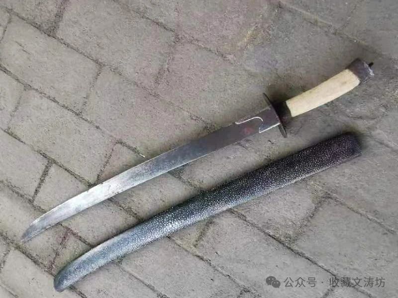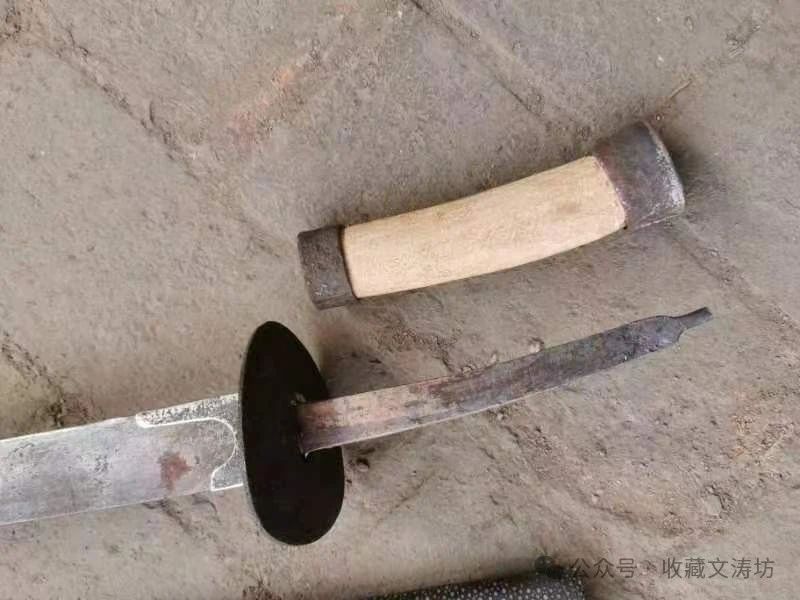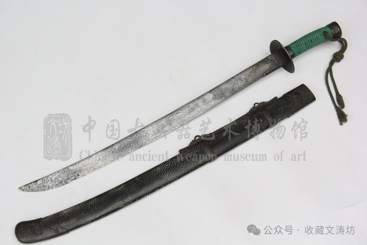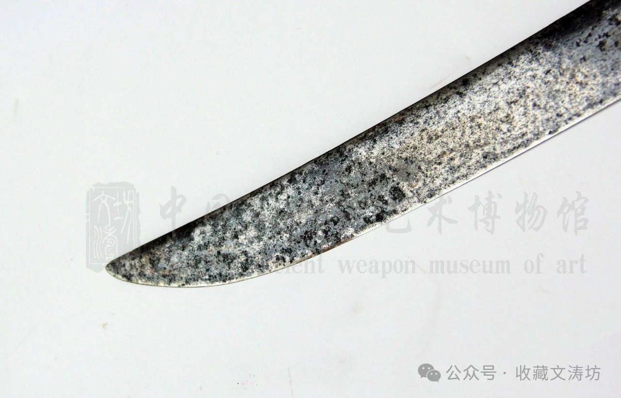 刀鞘装具根据清代样式,与藏友反复沟通后,精选老铁手工围制。全装完工后,经文涛坊独家秘法做旧,历经数月,手工盘磨,包浆自然。