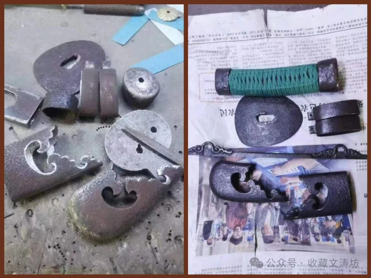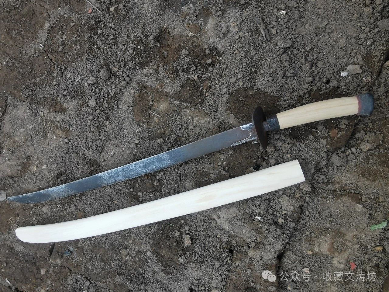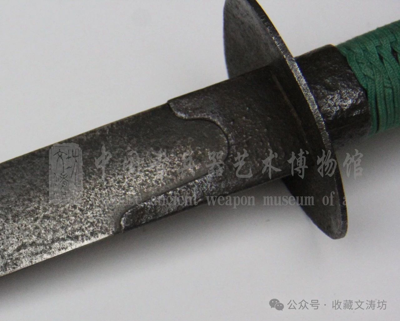 刀鞘装具根据清代样式,与藏友反复沟通后,精选老铁手工围制。全装完工后,经文涛坊独家秘法做旧,历经数月,手工盘磨,包浆自然。
