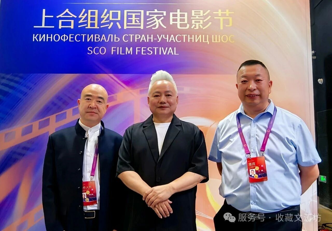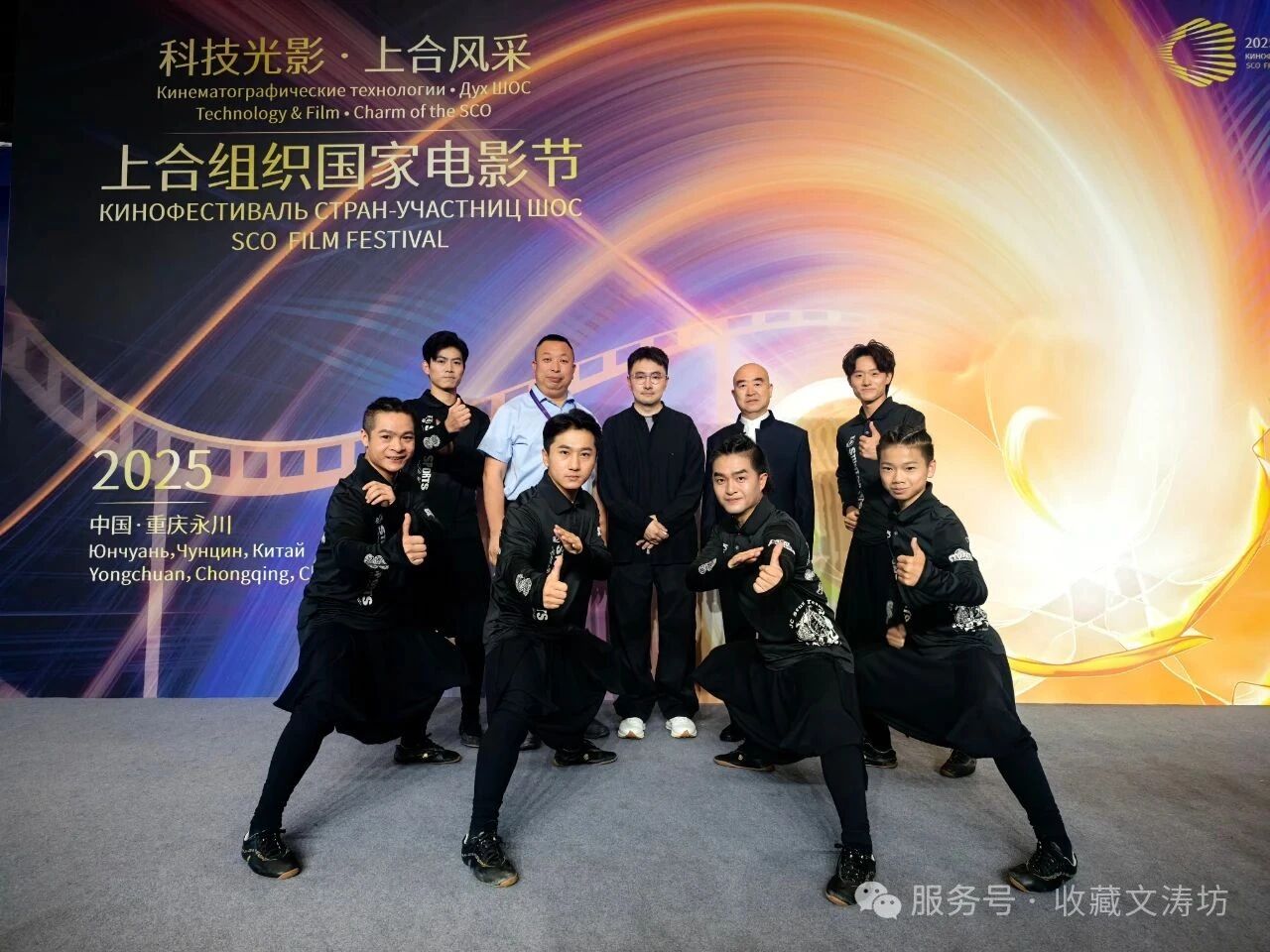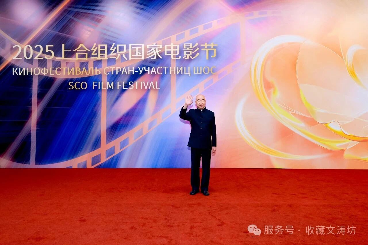 我们欢迎著名古兵器收藏家刘文涛入场,也请先移步我们的媒体拍照区。刘文涛是非物质文化遗产宝剑锻造第六代传人,中国古兵器艺术博物馆馆长、中国工艺美术协会评审委员会委员。刘文涛老师作为2022年冬奥会值日生,亲自设计了冬奥主题的圣火之剑,向世界展示中国的传统文化之美(主持人)在 2025 上合组织国家电影节现场,“科技光影・上合风采” 背景前,武术团队以刚劲姿态亮相,传统武术与光影盛会碰撞,展现多元文化交融活力,为电影节增添独特的东方力量与艺术氛围 。2025 上合组织国家电影节的活动现场,嘉宾们在 “科技光影・上合风采” 主题背景板前相聚。不同风格着装的身影,彰显多元魅力,共同为这场光影盛会添彩,见证上合电影交流的精彩时刻 。